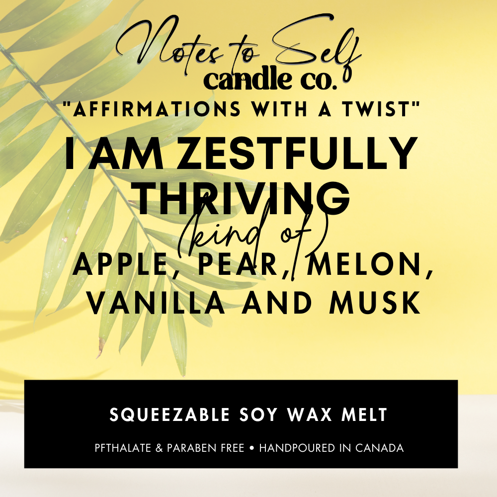 Feel the zest with I Am Zestfully Thriving (Kind Of) — a lively blend of white grapefruit, sweet tangerine, blood orange, and a dash of cinnamon. It’s the perfect scent for when you’re trying your best to thrive, even if you're still figuring it out. Bright, citrusy, and with just the right amount of spice, this fragrance is for those days when you’re giving it your all — even if it’s a little half-hearted.