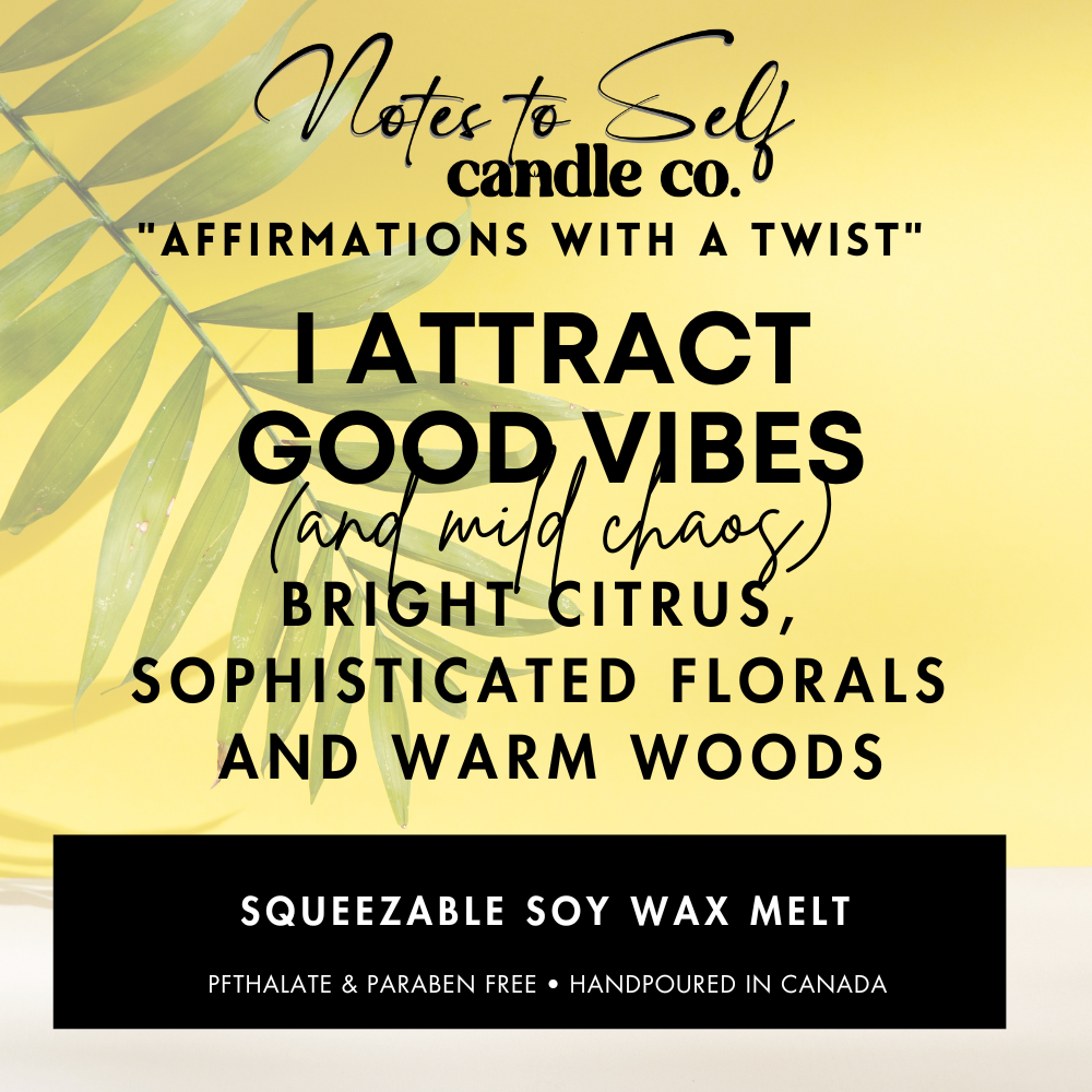 Embrace the perfect blend of positivity with I Attract Good Vibes (And Mild Chaos). This luxurious mix of bright citrus, sophisticated florals, and rich, warm woods creates a fragrance that’s as uplifting as it is grounding. It’s the ideal scent for when you’re radiating good energy... with just a hint of delightful unpredictability.