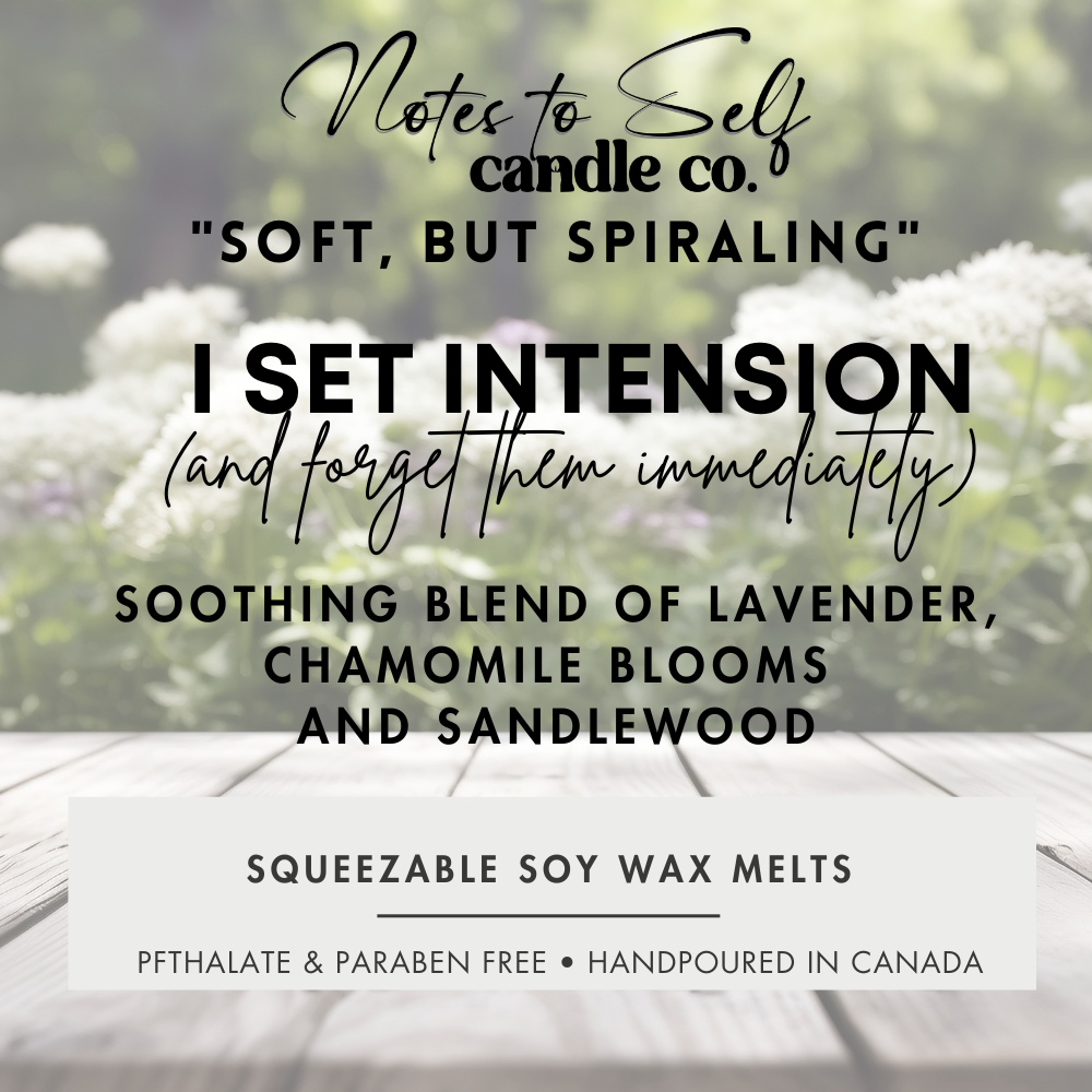 Settle into a moment of calm with I Set Intentions (And Forget Them Immediately). This soothing blend of lavender, chamomile blossoms, and sandalwood is perfect for those moments when you’ve set your goals… but might need a little reminder to actually follow through. Whether you’re embracing the journey of self-improvement or just savoring the peace, this fragrance will help you find your center — even if your intentions drift away.